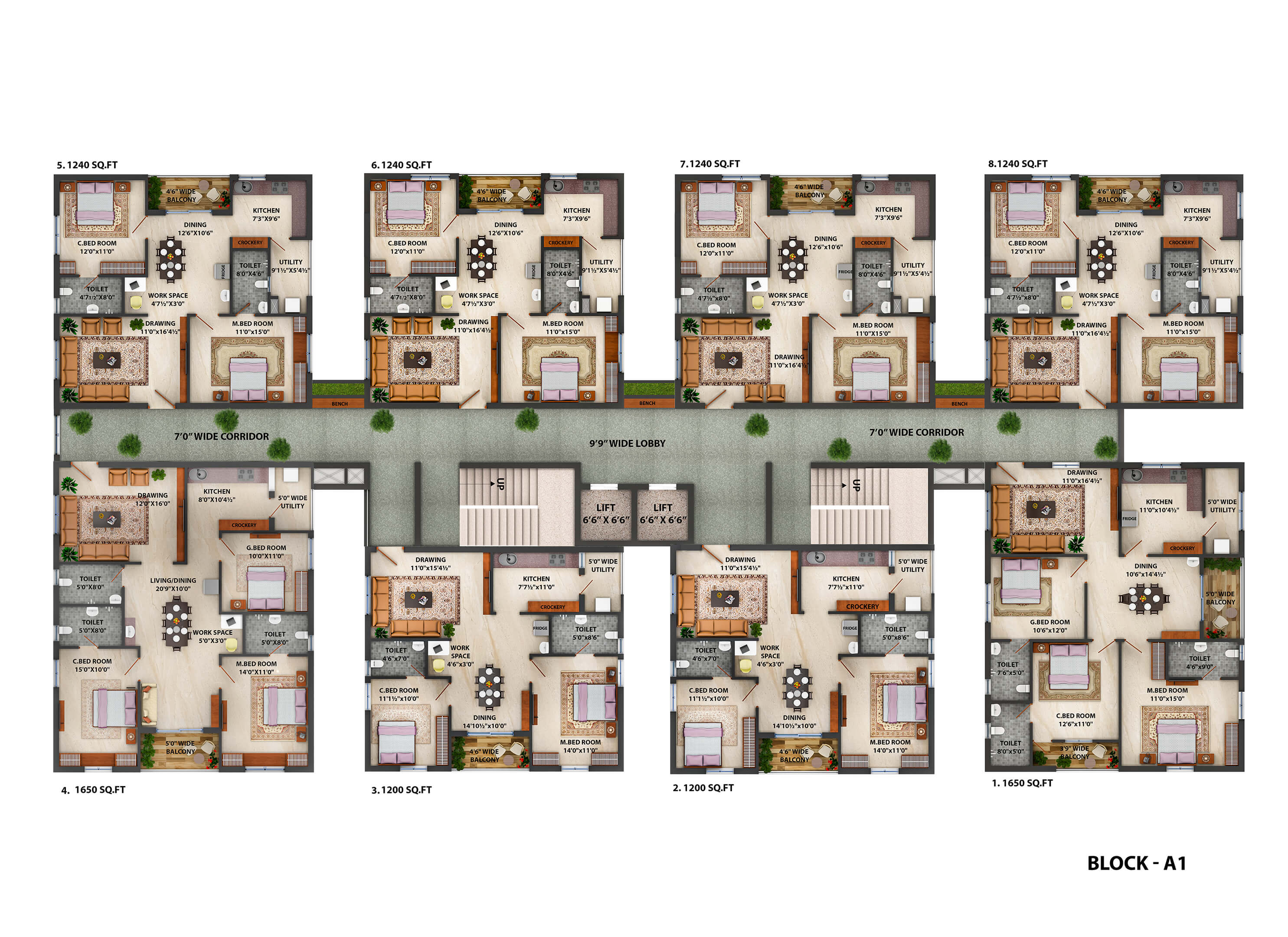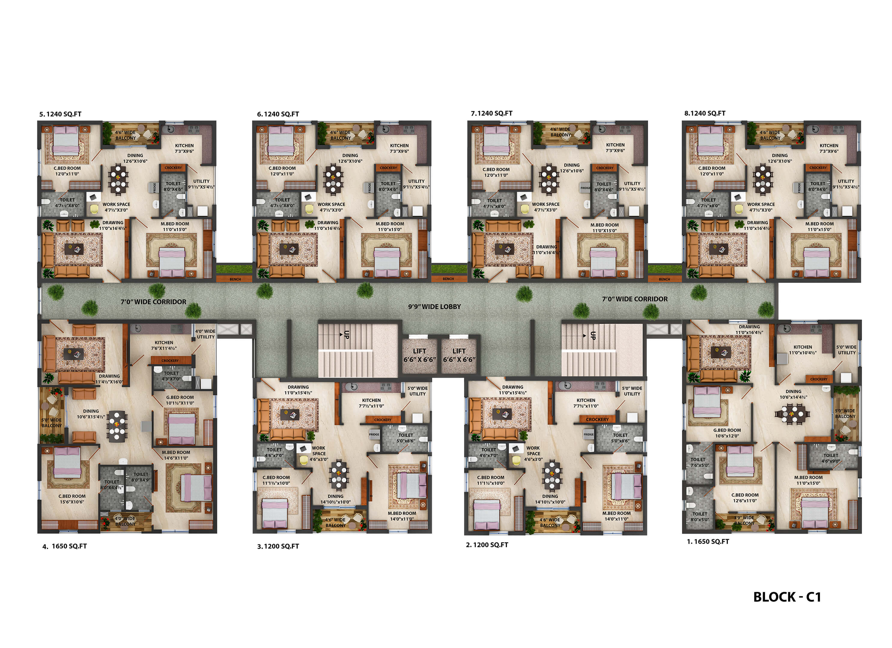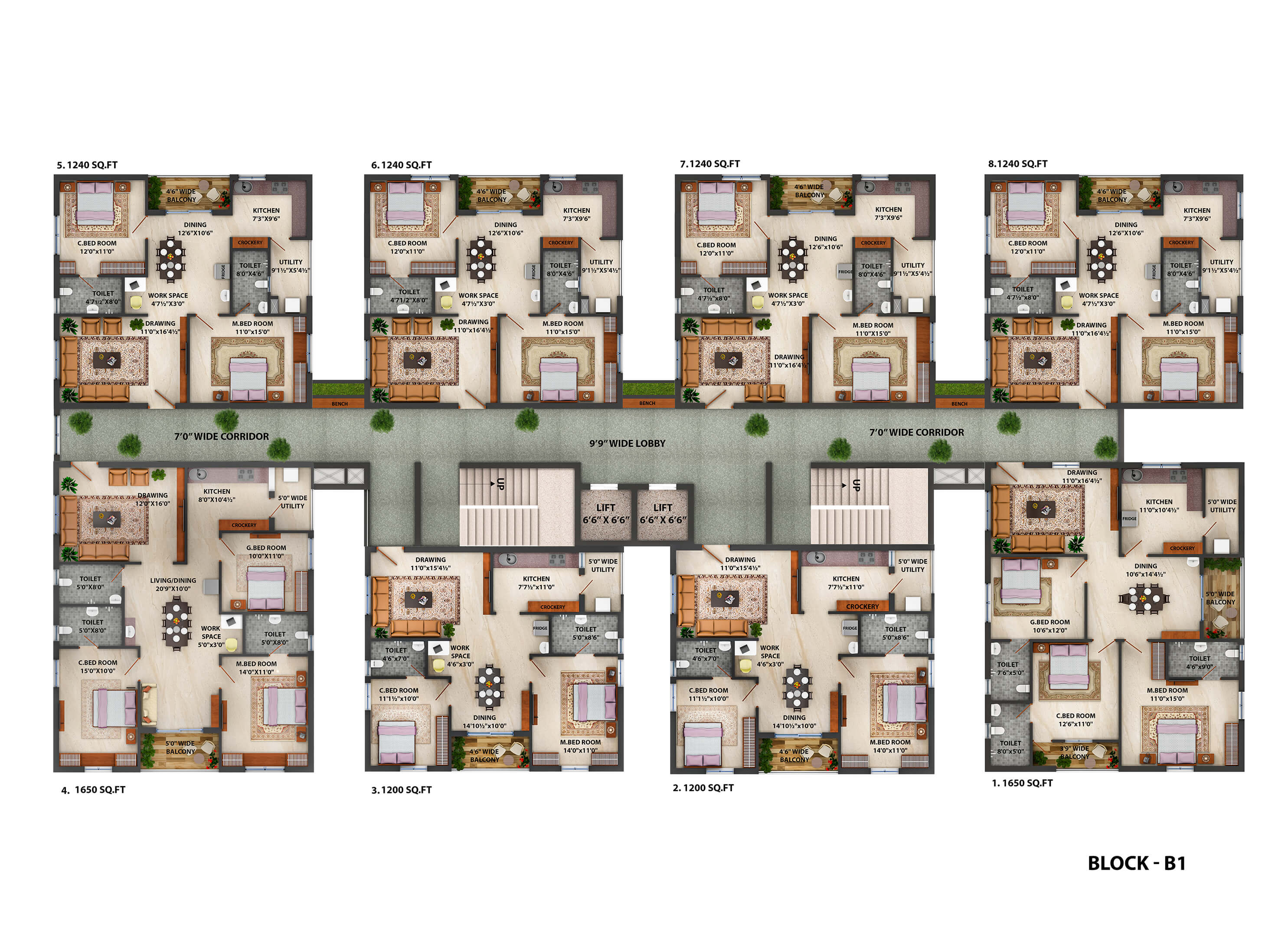 | Unit Sizes | 1200 Sft.,1240 Sft., and 1650 Sft. |